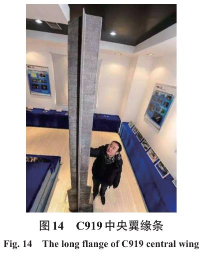 LMD 技術在國內外航空航天領域得到了廣泛的應用,例如波音公司、空客公司、洛克希德馬丁公司、GE航空等世界著名的航空公司都在大力發展各自的激光直接沉積技術[13]。北京航空航天大學研制的某大型激光直接沉積金屬增材制造設備如圖 12所示,可為中國商用飛機、軍機項目制造大型復雜部件,包括鈦機身骨架及高強度起落架。北航王華明教授團隊研制了主承力飛機鈦合金加強框等關鍵構件,實現了在包括C919大型客機在內的多種型號飛機上的裝機應用。北航應用LMD技術制造出了飛機大型鈦合金主承力構件,如圖13所示。西北工業大學采用LMD技術成功試制了C919機翼肋構件,如圖14所示。